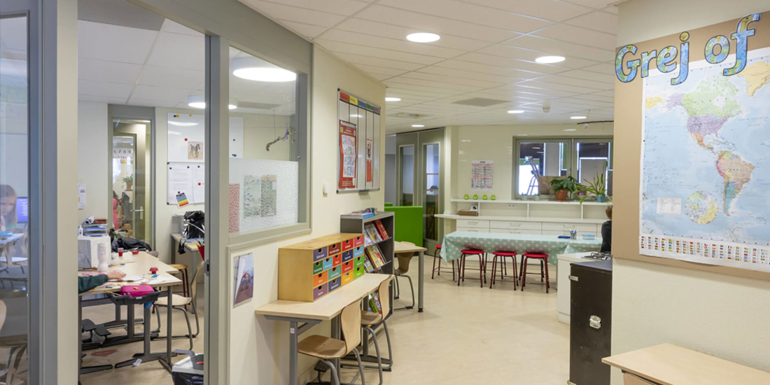 In deze serie foto’s ziet u hoe de lokalen en andere ruimtes van onze school eruitzien. Kijk maar eens rustig rond.